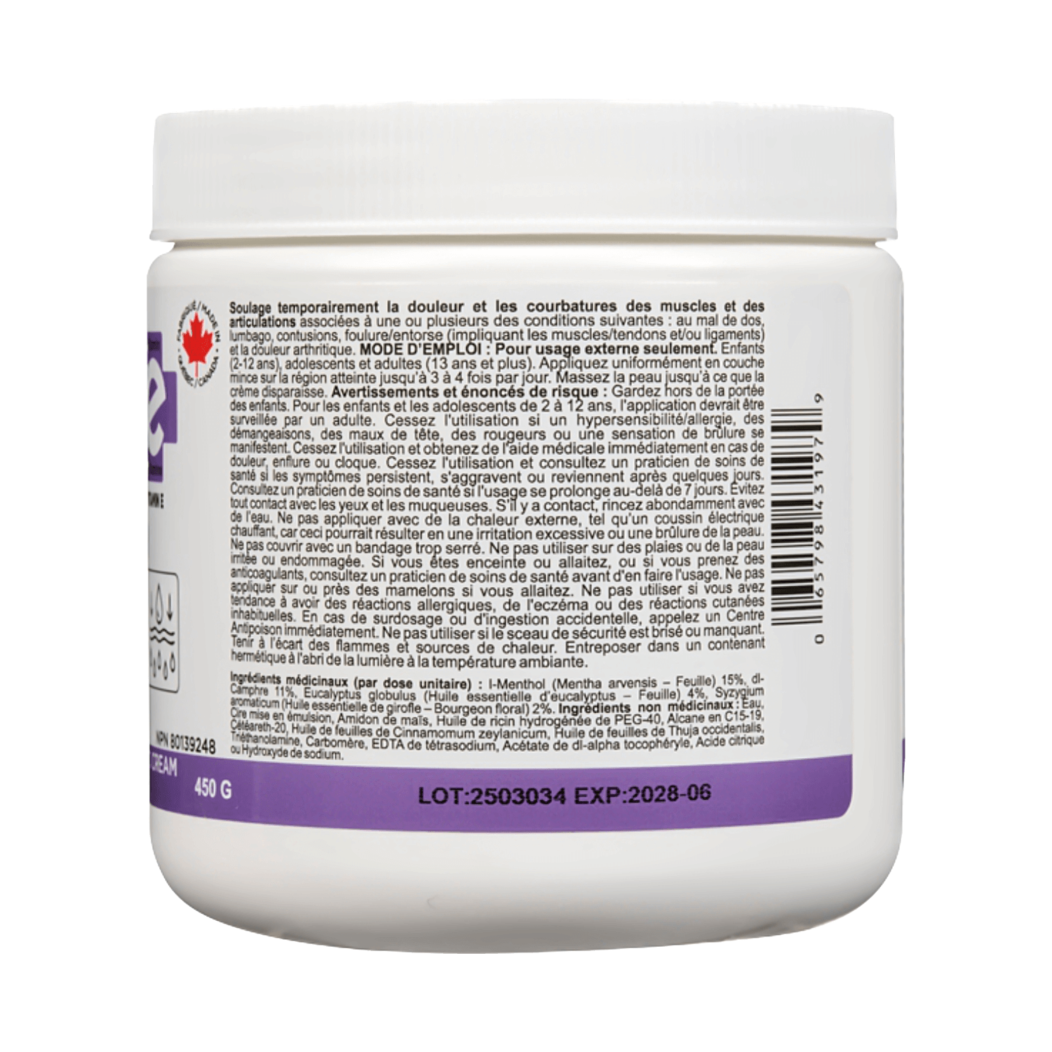 • Conseils médicaux : Consultez toujours un professionnel de la santé avant d’utiliser la crème antidouleur analgésique, surtout si vous êtes enceinte, allaitez ou prenez d’autres médicaments, afin d’éviter d’éventuelles interactions ou contre-indications.